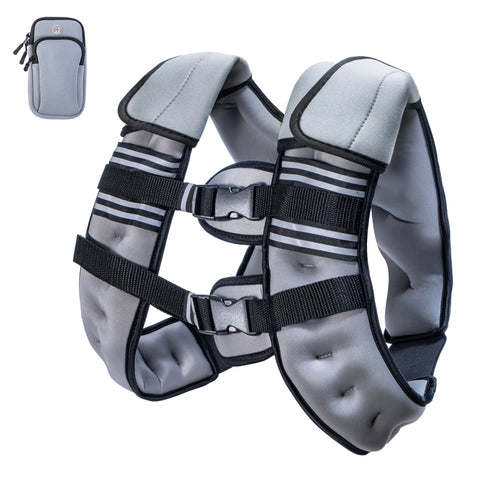 Dual Storage Pockets: Featuring a front detachable pocket that can be conveniently tied to your arm and a rear mesh pocket, our weighted vest offers ample storage options. Keep your valuables like phone, keys, and wallet safe.